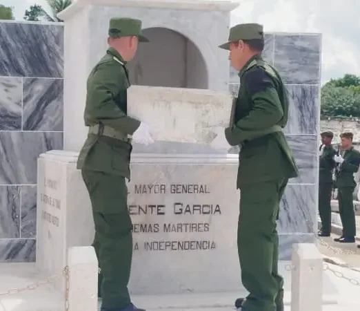 Realizan restauración del panteón del Mayor General Vicente García González en Las Tunas